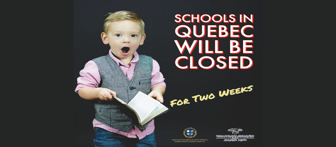 Με στόχο την μείωση της διασποράς του ιού COVID-19, ο Πρωθυπουργός του Κεμπέκ François Legault στο πλαίσιο μιας σειράς προληπτικών μέτρων, ανακοίνωσε σήμερα και το κλείσιμο όλων των σχολικών μονάδων της επαρχίας, από την Δευτέρα, 16 Μαρτίου 2020 και για δύο εβδομάδες. Να σημειωθεί πως στα σχολεία της Ελληνικής Κοινότητας Μείζονος Μοντρεάλ “Σωκράτης – Δημοσθένης”, δεν έχει παρουσιάσει κανένα κρούσμα του ιού COVID-19, καθώς εδώ και αρκετές εβδομάδες η διεύθυνση, οι εκπαιδευτικοί και γενικά όλο το προσωπικό του οργανισμού, έχουν λάβει όλα τα απαιτούμενα προληπτικά μέτρα πανδημίας (απολύμανσης των κτιρίων…