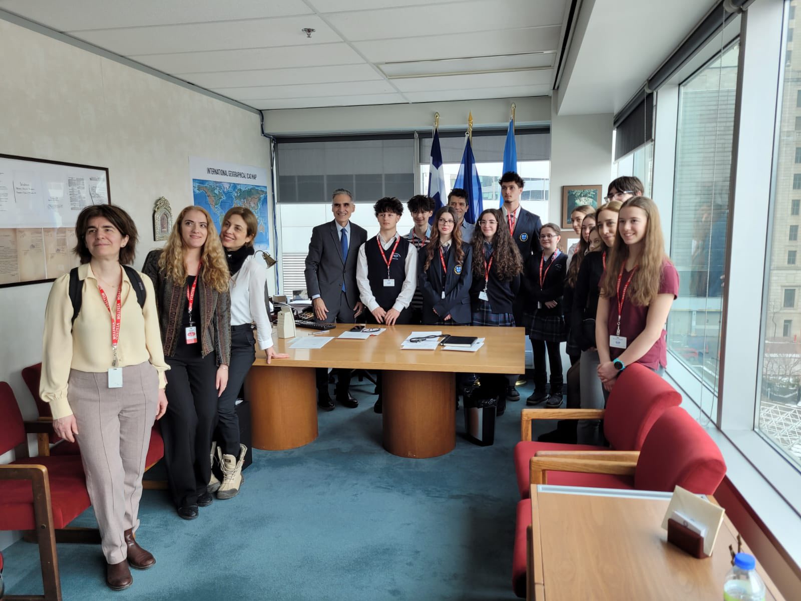 Μαθητές των ελληνικών σχολείων της Ελληνικής Κοινότητας Μείζονος Μοντρεάλ επισκέφθηκαν την Πέμπτη, 19 Μαρτίου 2026, την έδρα του Διεθνούς Οργανισμού Πολιτικής Αεροπορίας (ICAO) στο Μόντρεαλ, έναν εξειδικευμένο οργανισμό του ΟΗΕ που ιδρύθηκε το 1944 για τη διασφάλιση των διεθνών αερομεταφορών. Τα παιδιά, συνοδευόμενα από τη Γραμματέα Νεολαίας της ΕΚΜΜ Αντωνία Μακρή, τη Γενική Διευθύντρια του καθημερινού σχολείου “Σωκράτης-Δημοσθένης”, τη Γενική Διευθύντρια της Συμπληρωματικής Εκπαίδευσης Ελένη Τουρκοχωρίτη και τους εκπαιδευτικούς Κ. Παπαχρήστου και Α. Σουλικιά, ξεναγήθηκαν στην αίθουσα του Συμβουλίου, στην αίθουσα της Γενικής Συνέλευσης και στο γραφείο της Ελληνικής Αντιπροσωπείας.…